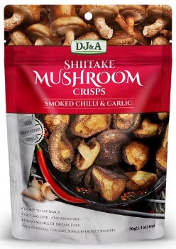 צ'יפס פטריות שיטאקי קריספיות מעושנות בצ'ילי ושום.